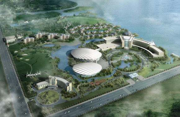 项目总占地500亩(33.3公顷),总建筑面积12万平方米,包括水域面积4.57万平方米,绿化率68.5%,道路广场面积4万平方米,地面停车面积7850平方米,地下停车面积2040平方米,容积率0.36,建筑密度11.9%。建筑项目主要包括:渤海国际大酒店、温泉休闲中心及体育中心、海员俱乐部、专家公寓楼、临湖别墅群。其中大酒店建筑面积62806平方米、温泉休闲中心建筑面积10754平方米、体育中心建筑面积4862平方米,投资总额约120000万元。